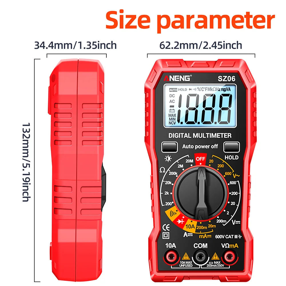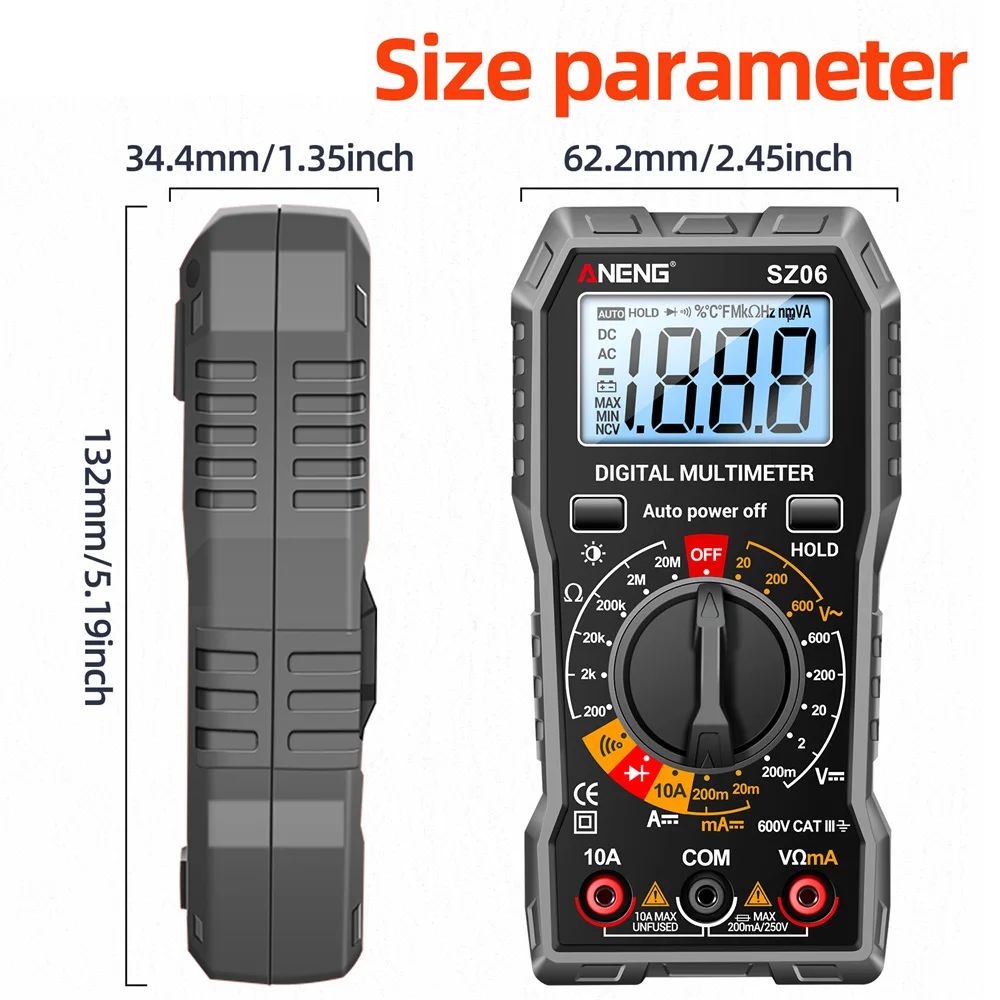 ANENG SZ06 Digital Multimeter Voltage Tester Voltmeter TRMS 2000 Counts Auto-Ranging Ohm Volt Amp Meter Measuring AC/DC Voltage